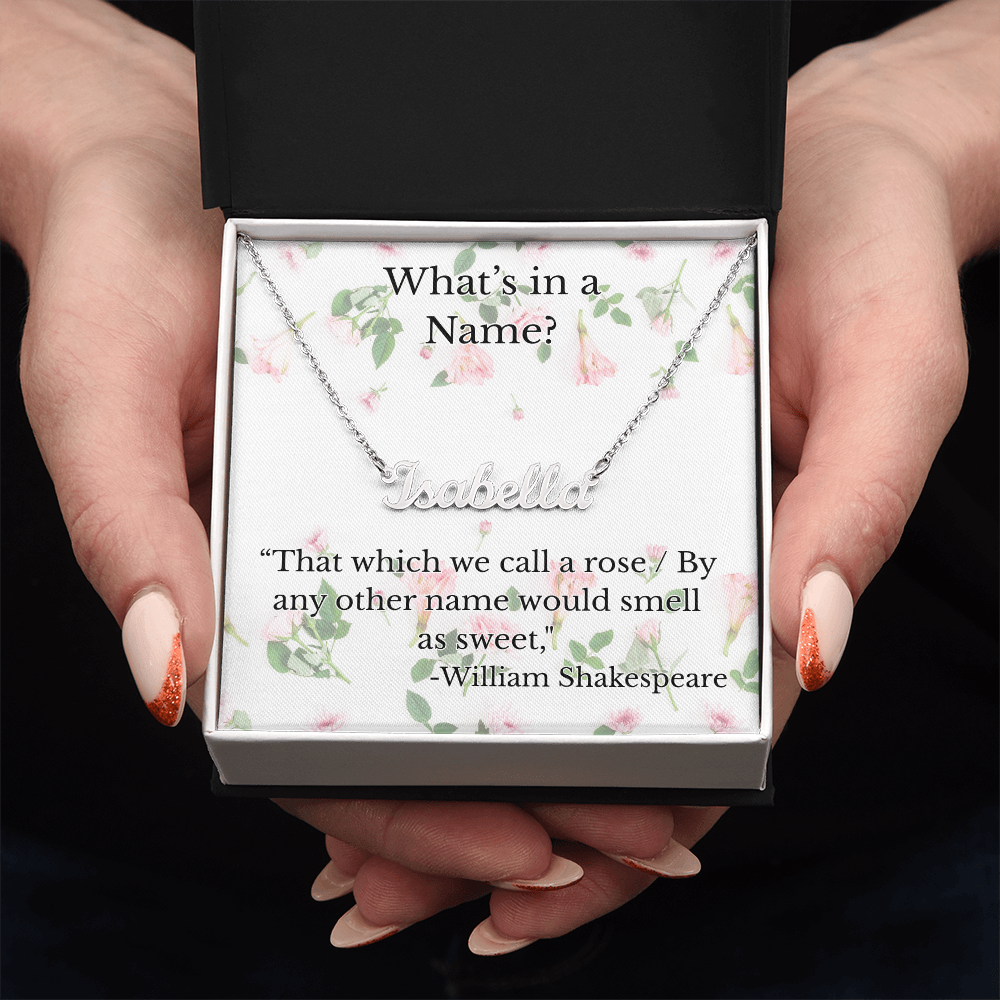 What's in a name? EVERYTHING! It's everything about you! What a great necklace to have, meeting new people, events etc. No one will get Your name wrong again.