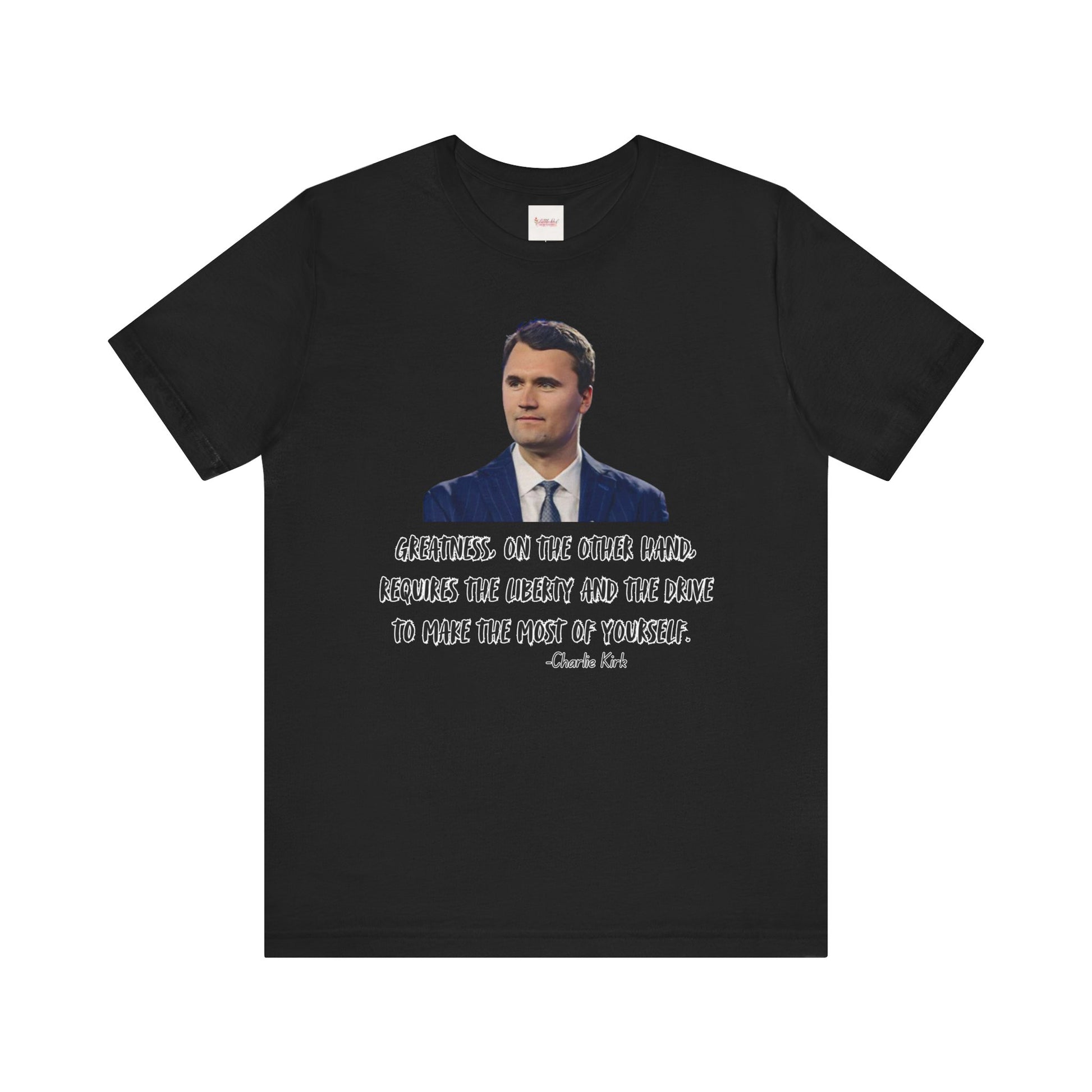 In remembrance of the Great Charlie Kirk, wear this T-Shirt to remember his profound impact. Perfect for fans of Charlie Kirk and those who appreciate his influence. Relevant for patriotic holidays and occasions.